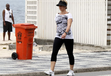 Sozinha, a atriz se exercitou com fones de ouvido e uma viseira, que quase cobria seus olhos.