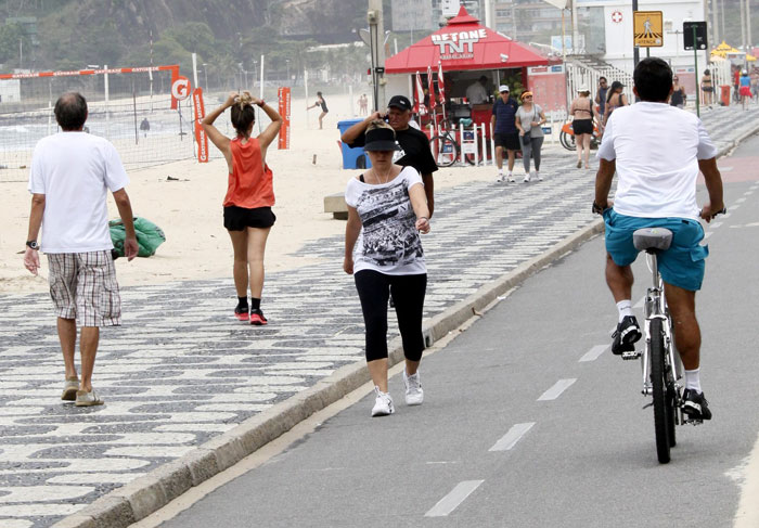 Giulia Gam foi vista caminhando pela orla da praia do Leblon, localizada na Zona Sul do Rio de Janeiro, na tarde desta terça-feira (23).